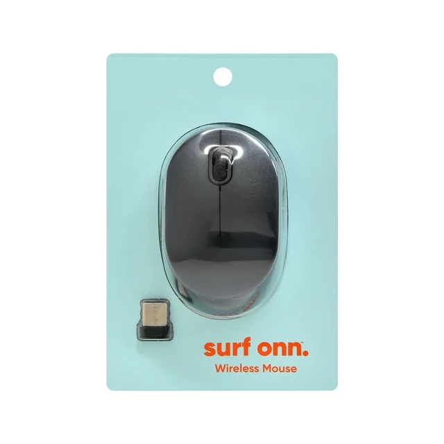 onn. Wireless Computer Mouse with Nano Receiver, 1600 DPI, Windows and Mac Compatible, USB Receiver, Gray