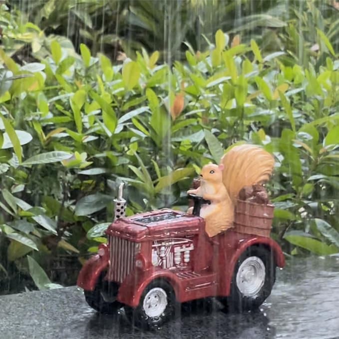 Outdoor Solar Powered Lighted Squirrel's Farm Tractor Statue Used in Lawn Garden Decor, Yard, Flower-Pool Christmas and Harvest Decoration