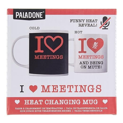 • I love meetings: the perfect gift for anyone who gets excited by well ordered meetings, or meetings about meetings, or even meetings about meetings about yet more meetings, the I love meetings mug offers perfect stimulation and refreshment during meetings all day, everyday
