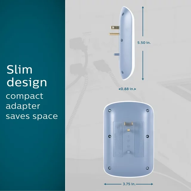 • Space Saving: Surge protection can be sleek with this slim outlet adapter\u2019s compact design.