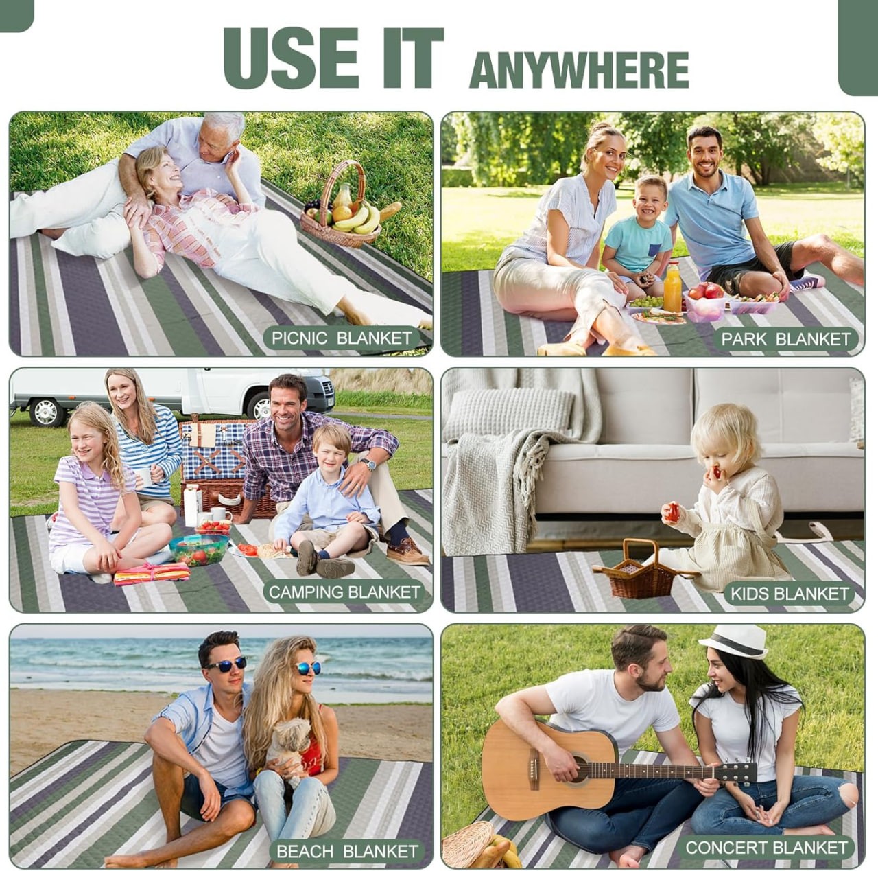 EXTRA LARGE & PORTABLE - Unfolded portable picnic blanket is 80 X 80 inches. Weighs Only 2.3 Pounds. Equipped with double adjustable metal buckles for fixation. It easily folds to a compact tote. Can accommodate 6-8 people to sit on it ideal for your picnic, beach adventure, backyard party, camping, backpacking, or simply to have a clean and comfortable picnic mat for your kids to play on.