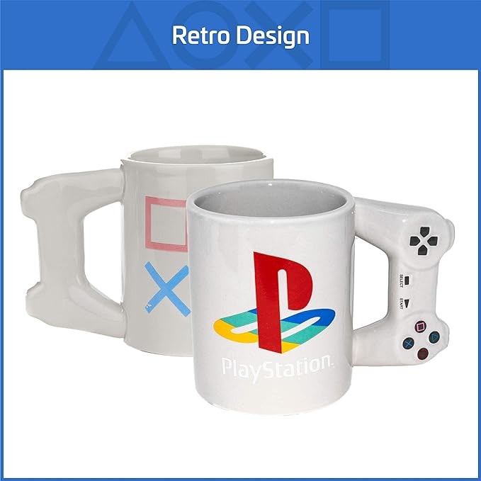 • RETRO COOL: Great for Gamers, the PlayStation Controller Mug features a gray decal with classic PlayStation logo and controller symbols, as well as an original controller shaped handle