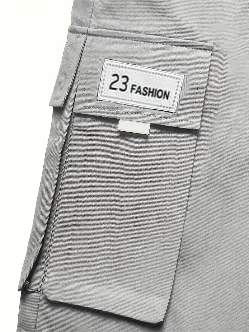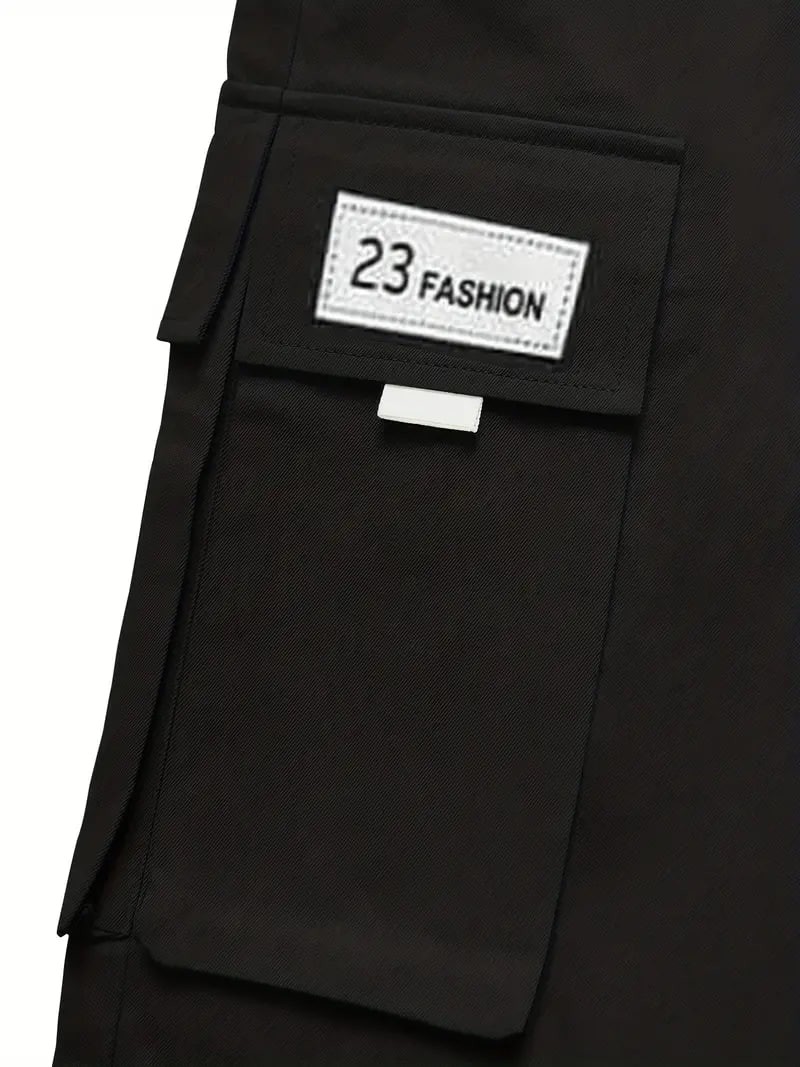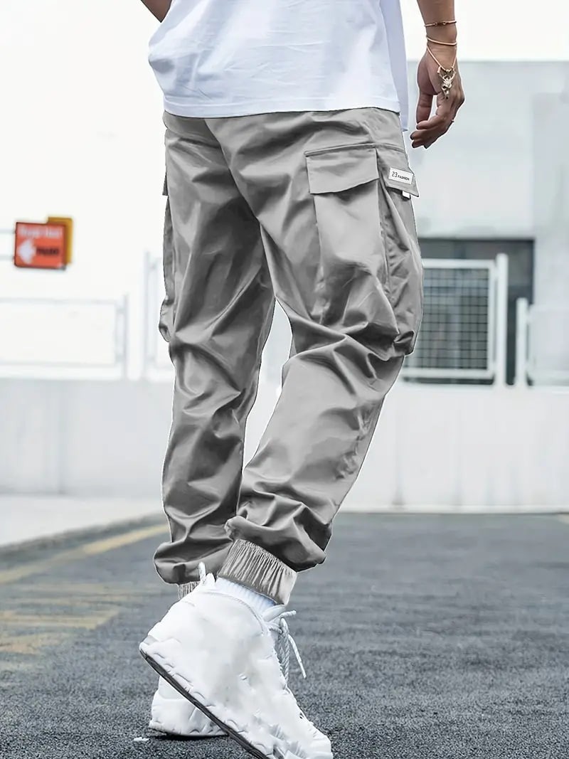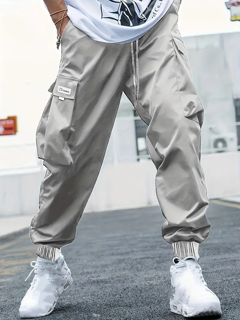 plus size mens drawstring cargo pants letters print multi pocket design perfect for outdoor activities details 1plus size mens drawstring cargo pants letters print multi pocket design perfect for outdoor activities details 1