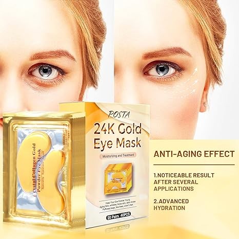 POSTA 24K Gold Eye Mask, 20 Pairs Eye Treatment Mask With Collagen, Under Eye Mask Treatment for Puffy Eyes, Dark Circles Corrector, Used for Eye Bags, Anti Aging Patches Luxury Gift for Women and Men
