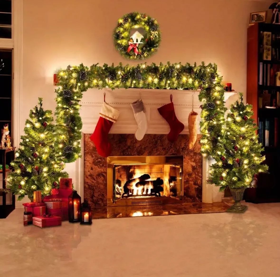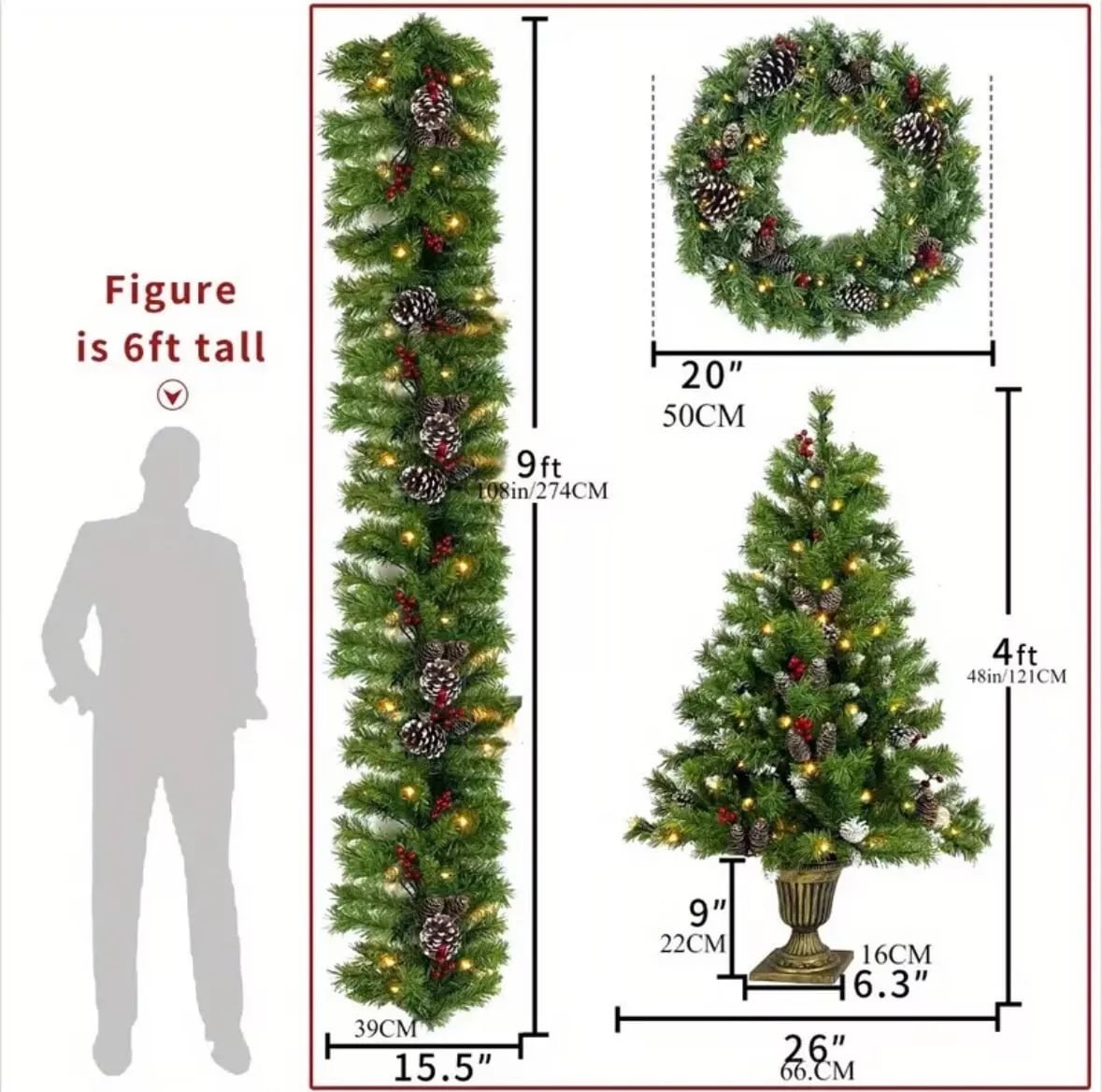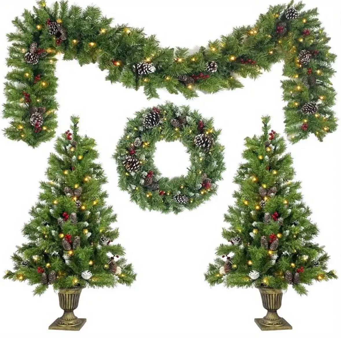 Pre-lit Xmas Tree Artificial Christmas 4 Piece Set, Garland, Wreath
