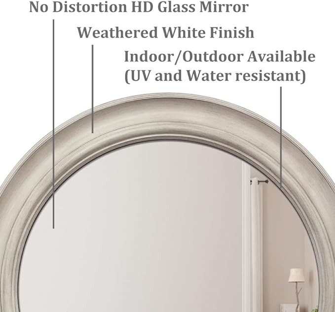 Presentime & Co. 26" Clifton in/Outdoor Farmhouse Wall Mirror, No Distortion HD Glass Mirror, Farmhouse Mirror and Wall Art for Wall Decoration, Weathered White Finish