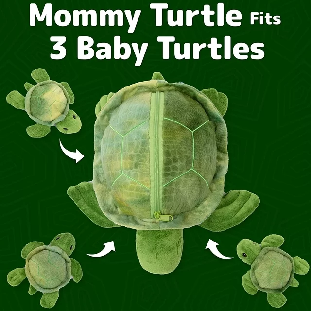 • Includes: Three premium quality, washable baby turtle with one big 24'' zippered turtle mom