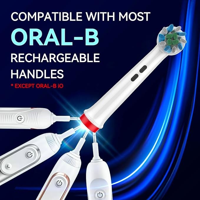 • Replace Brush Head EVERY 3 MONTHS: Our eletronic brush heads are compatible with Oral-B electric toothbrush models (D4510 D12013 D12013W D12523 D17525 D18 D19523 D19545 D20523 D20545 OC18 D8011 D9525 D9511 D20 D25 D30 D32 type4739 3709 3728 3738 3744 3757 type4731 4728 4739 3709 3728 3738 1000 3000 5000 8000 8850 8900) except Vitality Sonic, Sonic Complete, Pulsonic, CrossAction Power and iO.