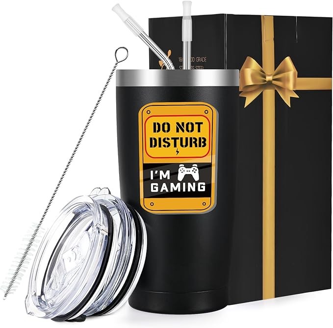 • CHRISTMAS GIFTS FOR GAMER: This best Christmas gifts for gamers stainless steel insulated travel tumbler is equipped with a complete set of accessories, including 2 stainless steel straws, 1 sponge cup brush, 1 stainless steel straw brush, and 2 different types of BPA-free lids.