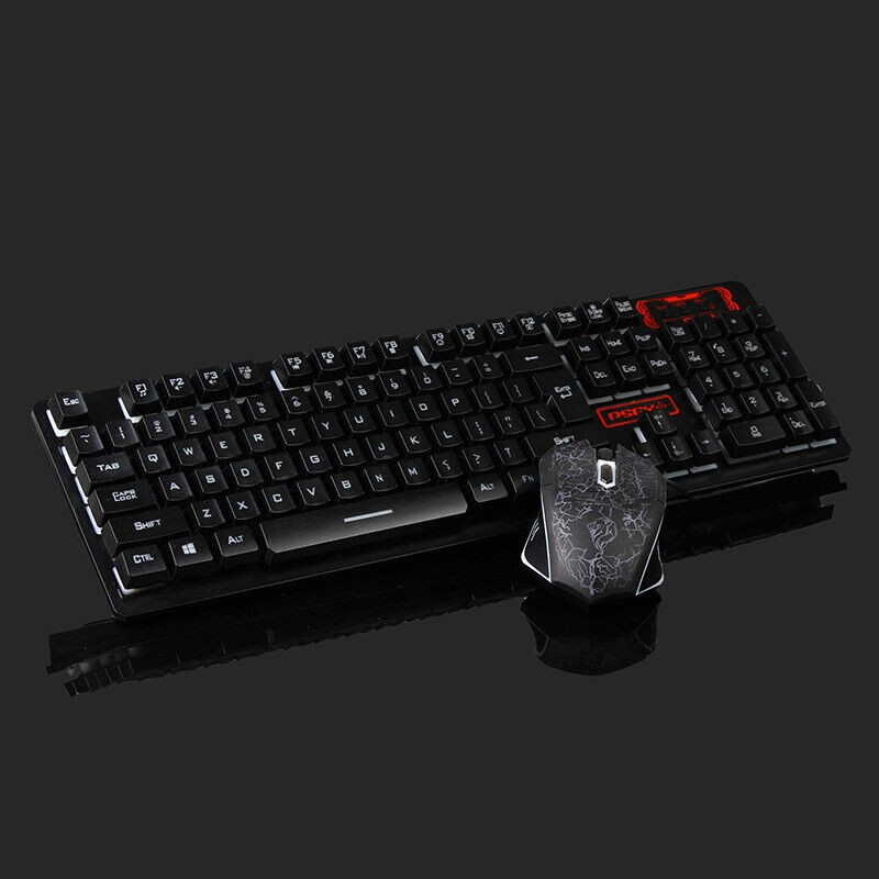 Rainbow LED Gaming Keyboard and Mouse Set Multi-Colored Backlight Mouse