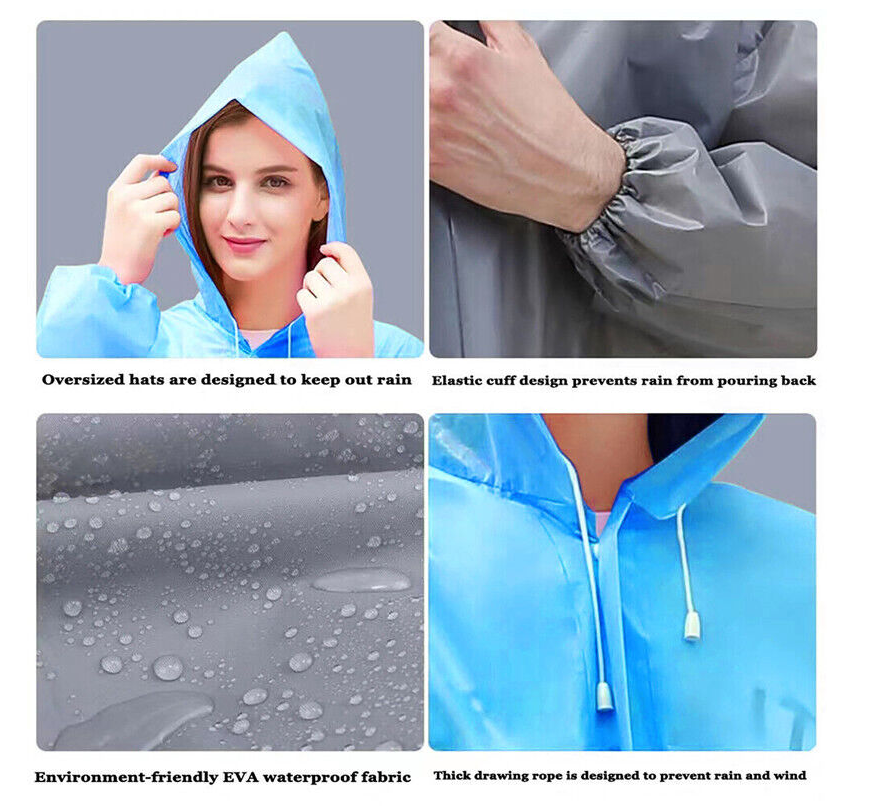 The rainwear is made of EVA,which is safe and durable to use,comfortable to wear.