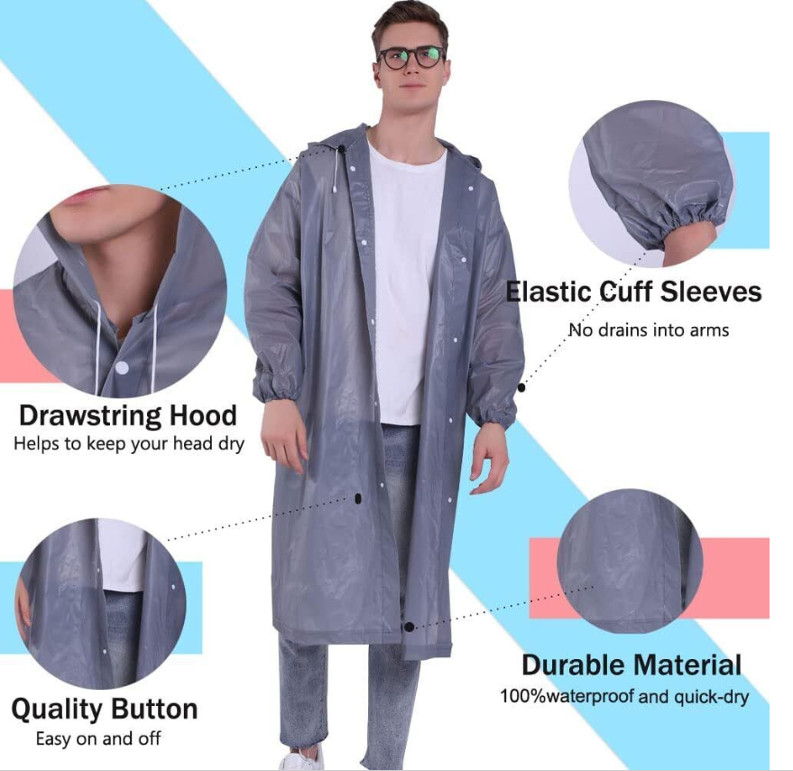 Great for emergencies, walking, camping, concert, festivals or other outdoor activities on rainy days