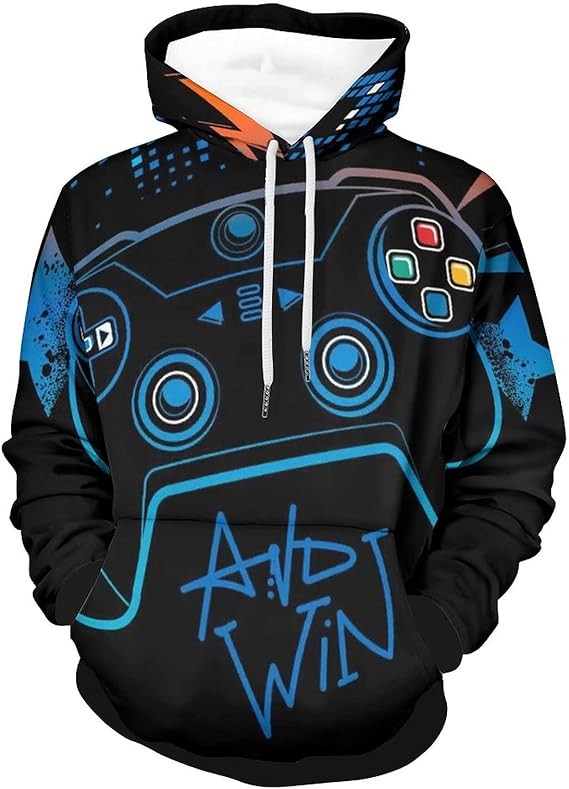 RAMINTSE Video Game Weapon Gamer Play Gaming Men's Sport Casual Hoodie Loose Cozy Warm Pullover Fashion 3D Print Jogging Hooded Sweater, L