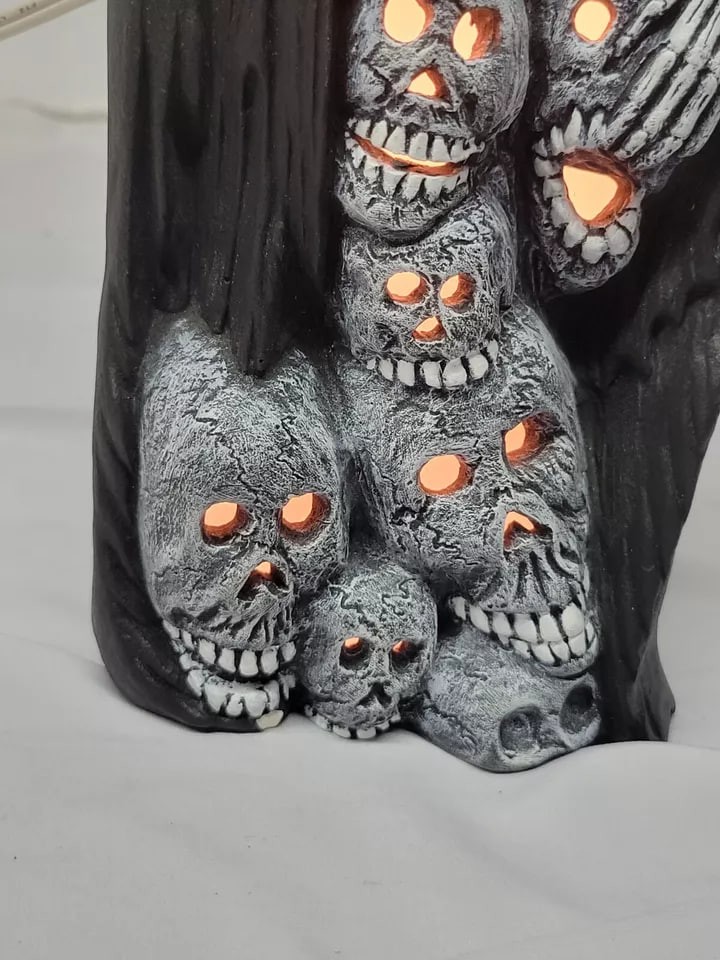 This rare ceramic figurine is perfect for Halloween enthusiasts who love to add unique touches to their decor. Featuring a Grim Reaper skeleton design, this 13-inch ghoul is sure to spook visitors and create a spooky atmosphere.