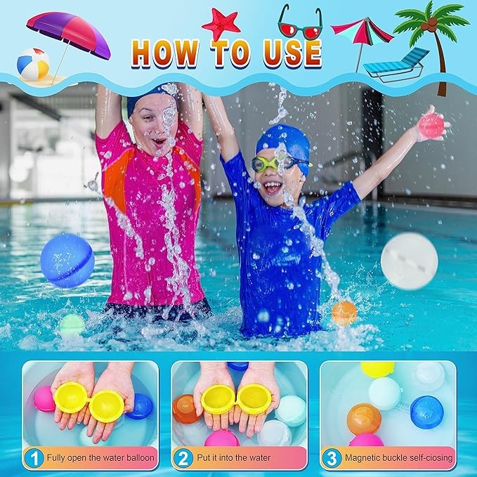 • 【Great GIFT】Our reusable water balloons are the perfect way for families and groups to enjoy summer fun in the sun, for kids, adults, students and even pets to play with. These water balloons also make great birthday party gifts for boys and girls ages 3 and up. Don't miss out on creating unforgettable summer memories with the ones you love!