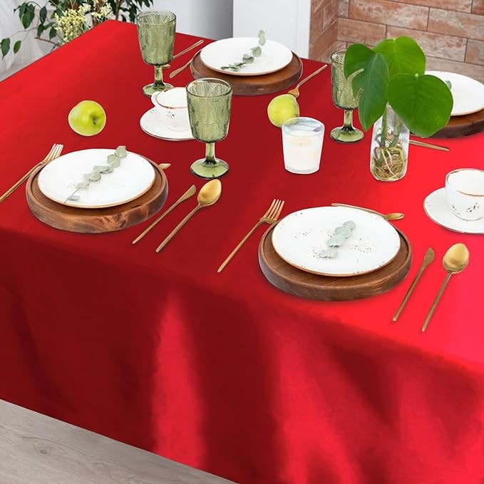 Size & Color - Satin Table Cover:With 4 packs of red satin tablecloth in each package, each satin rectangle tablecloth is about 58 inch wide and 108 inch long, large enough to decorate a table accommodating about 8-10 persons, providing a comfortable and elegant dining environment for your guests.