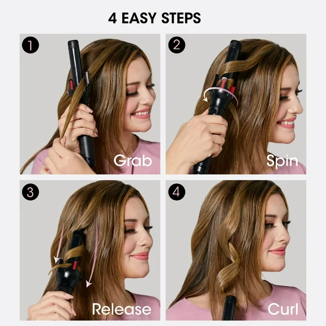 CURLS IN A FLASH: Build perfect, long-lasting curls at the push of a button; Instant 60-second heat-up time makes styling quick and easy; 5 easily adjustable temperature settings, from 250-450°F; Create a salon-style look for all hair types