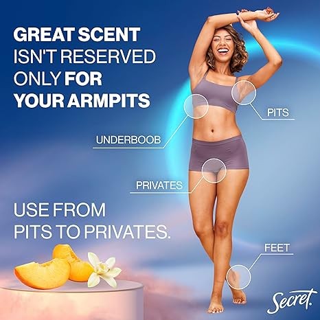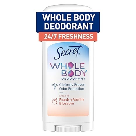 Secret Whole Body Deodorant Stick for Women, Peach & Vanilla Scent, Aluminum Free Deodorant Stick, 72 HR Odor Protection, 2.4 oz