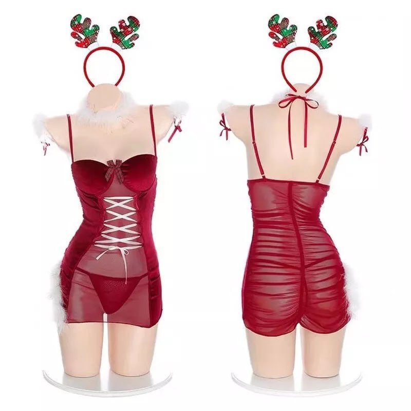 Sexy Lingerie Red Christmas Cosplay Costumes Deer Uniform Night Club Party Dress
