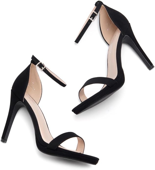 Shoe Land SL-Lovering Womens High heels Open Toe Stilleto Heels Ankle Strap Dress Heeled Sandals Black Red Gold Silver White Heels for Prom Wedding Party