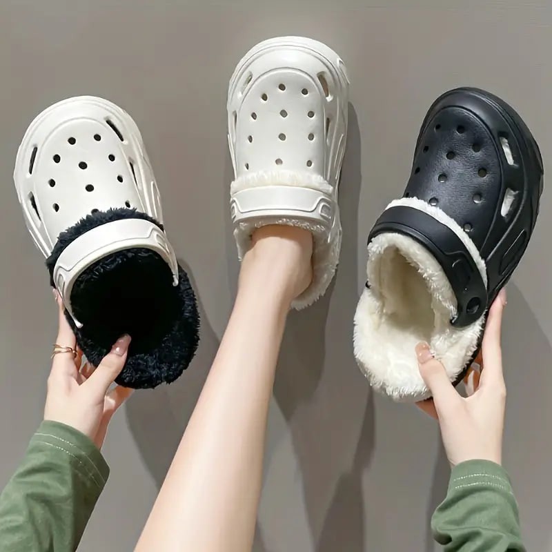 Solid Color Warm Home Slippers, Slip On Fuzzy Thermal Lined Platform Non-slip Shoes, Winter EVA Plush Cozy Shoes
