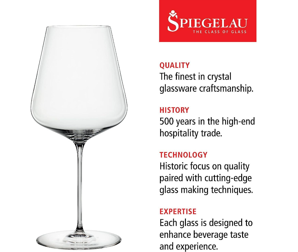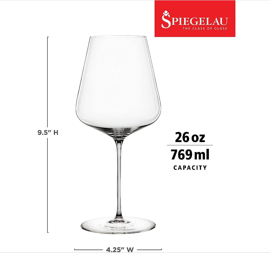 SPIEGELAU DEFINITION BORDEAUX WINE GLASSES, EUROPEAN-MADE LEAD-FREE CRYSTAL, DISHWASHER SAFE, SET OF 2, 26 OUNCES