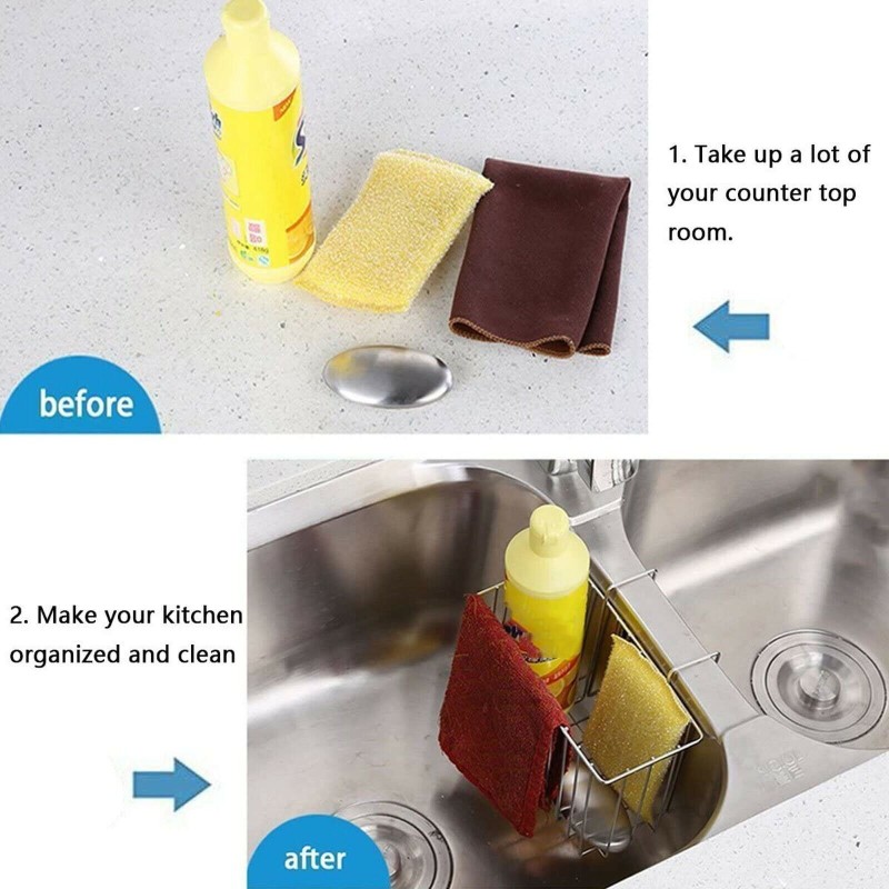 Stainless Steel Kitchen Sink Sponge Holder Caddy Brush Drainer Rack Basket '