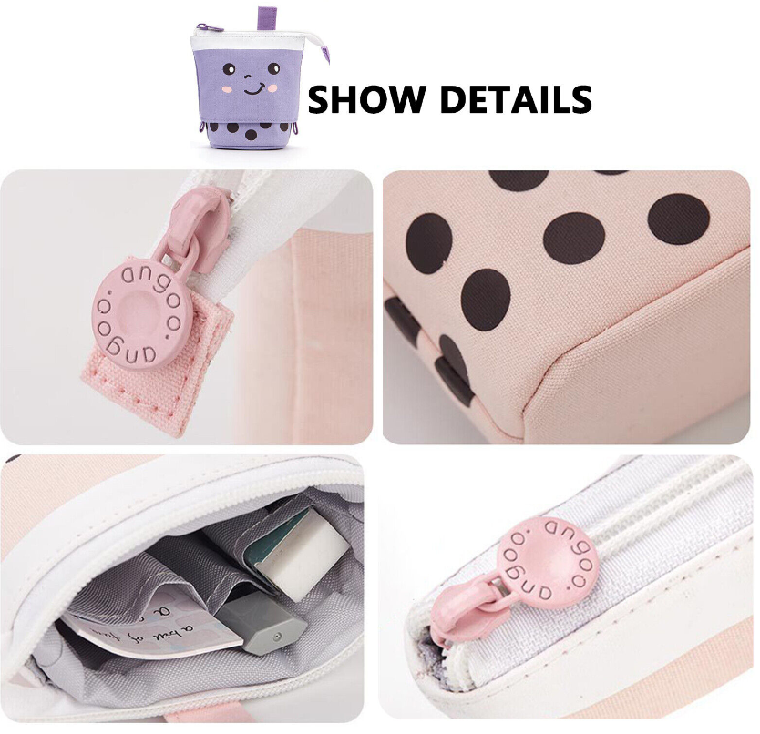 Cute Milk Tea Pen Bag Telescopic Pen Holder Stand-up Stationery Pencil Case