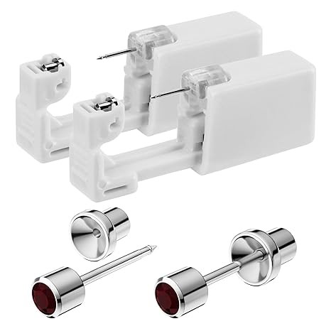 • ?【What's in The Box】2 packs disposable ear piercing kits, 2 packs sharp pin stud earrings (2pcs stud earrings are preloaded in the ear pierce gun) 2pcs safety bullet backs to keep your skin safe.