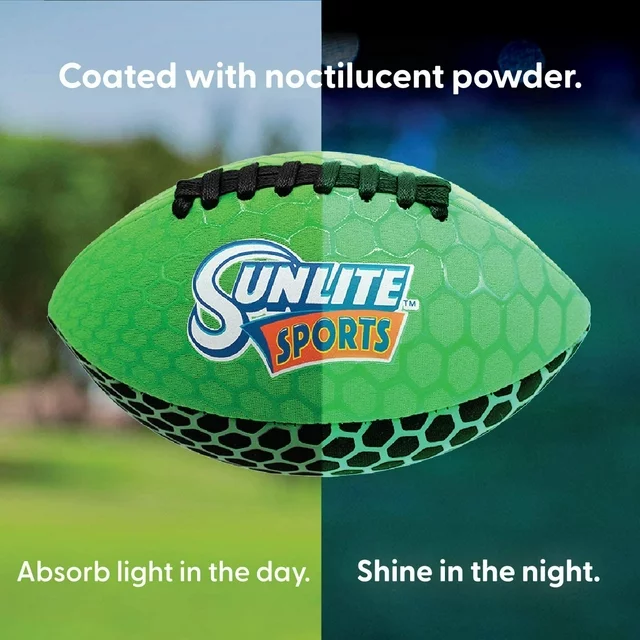 • [Glowing Feature] The Sunlite Sports Glow-Lite Football has the coolest design: glowing in the dark! While being played for an afternoon, this football will continue to glow for about half an hour after sunset.
