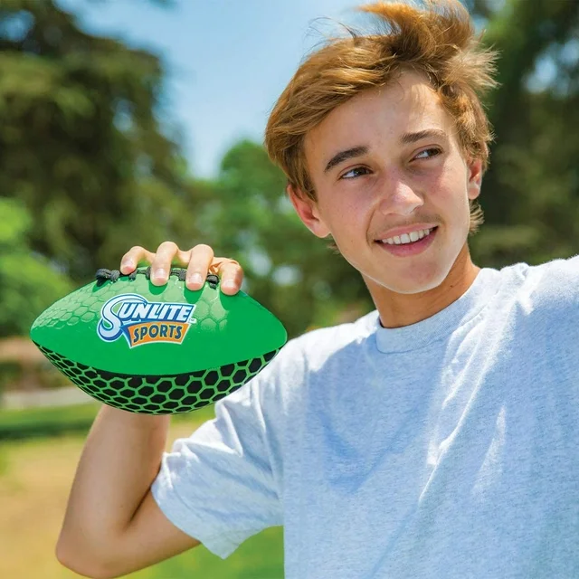 Sunlite Sports Football with Glowing Surface at Night, Waterproof, Outdoor Sports and Pool Toy, Beach Game, Neoprene, Green/Glowing, 9 inch