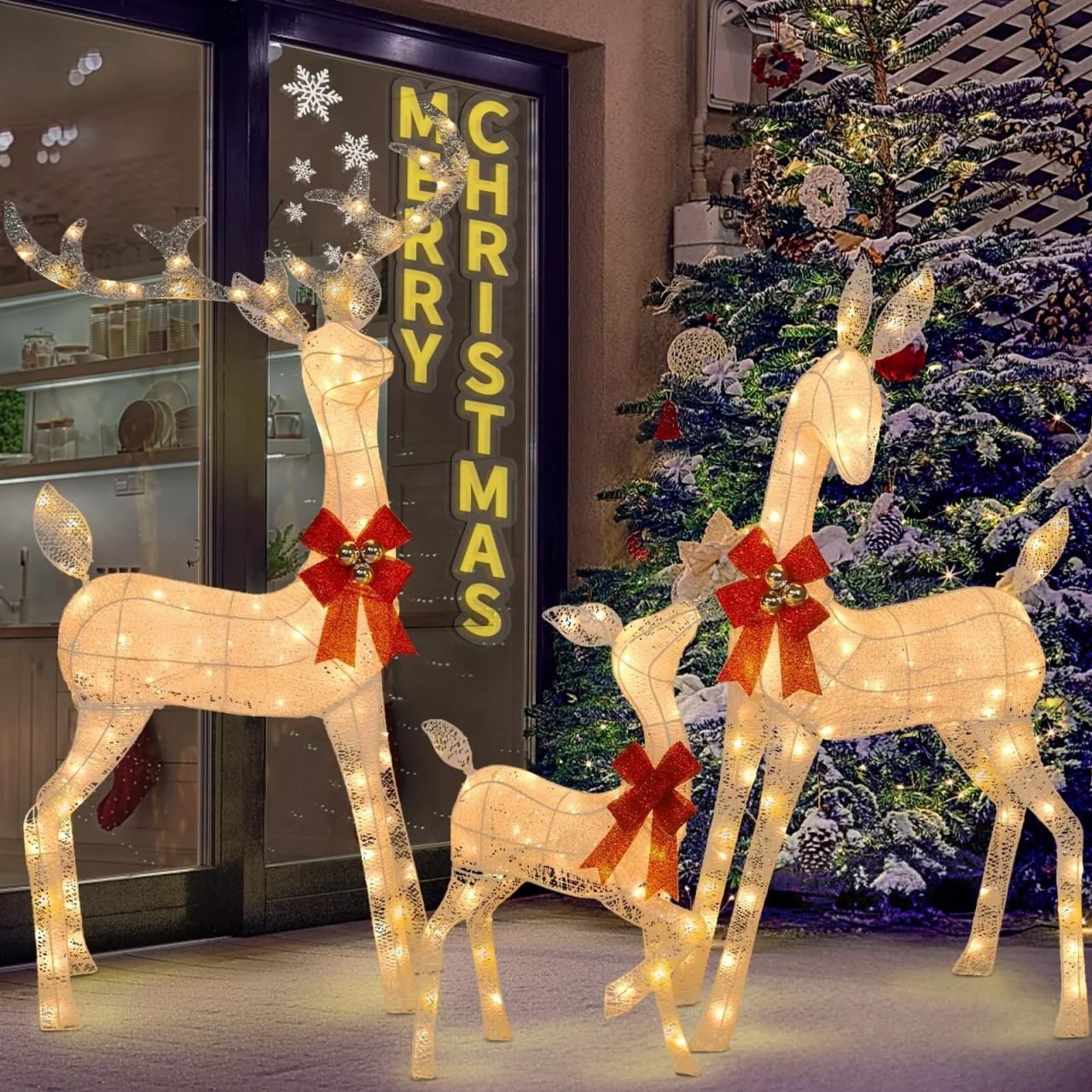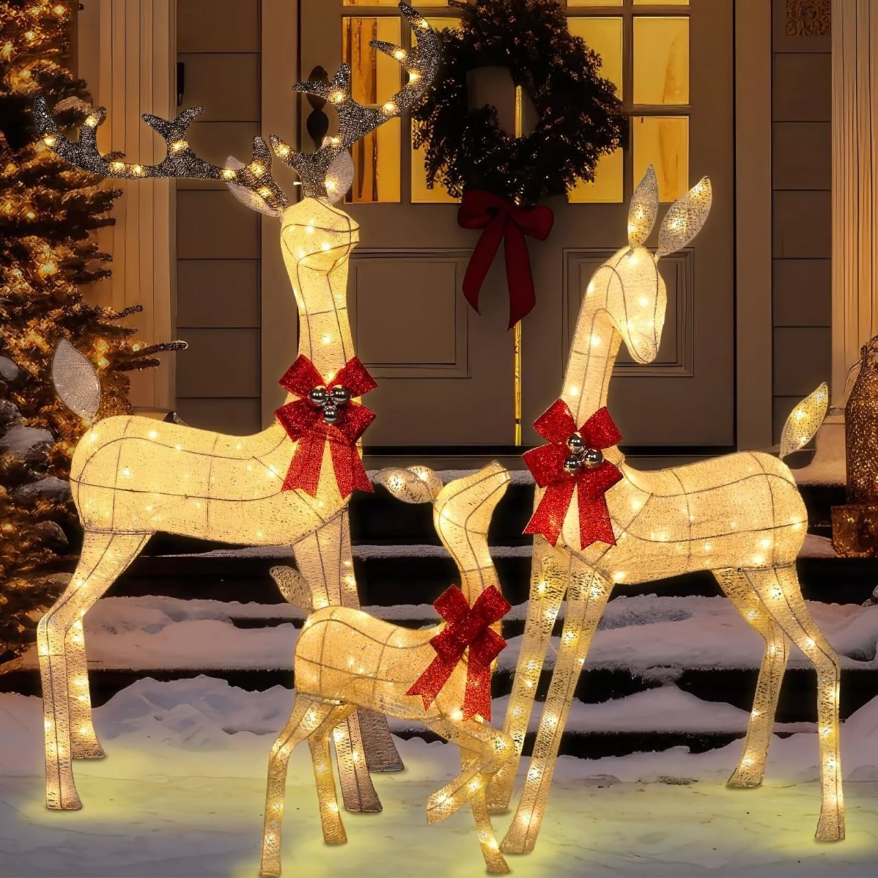 Super Large 3 Pieces Lighted Reindeer Christmas Decoration Family Set, Christ...