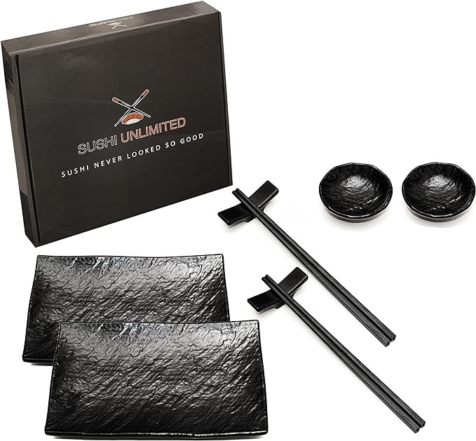 Sushi Unlimited Sushi Set for Two: Sushi Plates, Soy Sauce Bowls, Chopsticks, Includes Chopstick Holders!