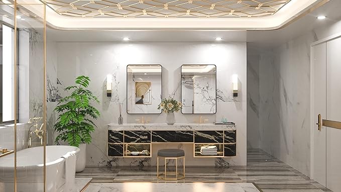 • ✨【Durable Metal Frame】 Aluminum alloy frame adopts straight grain brushed process to enrich the edge of this bathroom mirror with metallic luster and texture. Anodizing process makes the metal frame waterproof and antirust. Durable and non-deformed shape