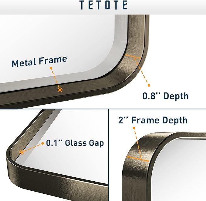 • ✨【Practical and decorative framed mirror】TETOTE's 22 x 30 inch bathroom wall mirror is made of HD glass and premium brushed bronze metal frame. Rectangle shape with round corner of the framed mirror features the modern style. Meets the decor needs to industry, rustic and modern style of bathroom, bedroom vanity, entryway, farmhouse, hotel or salon