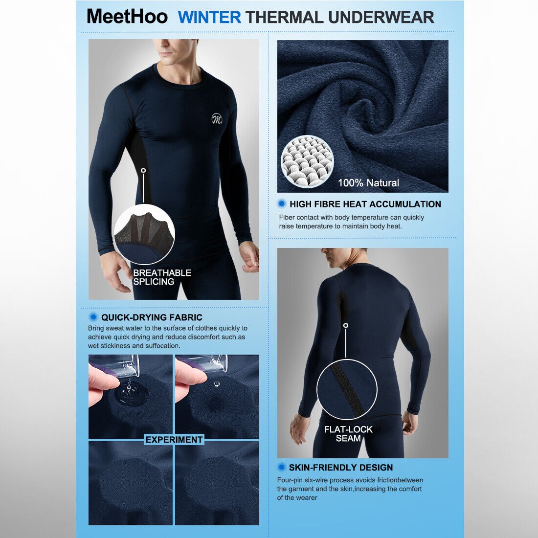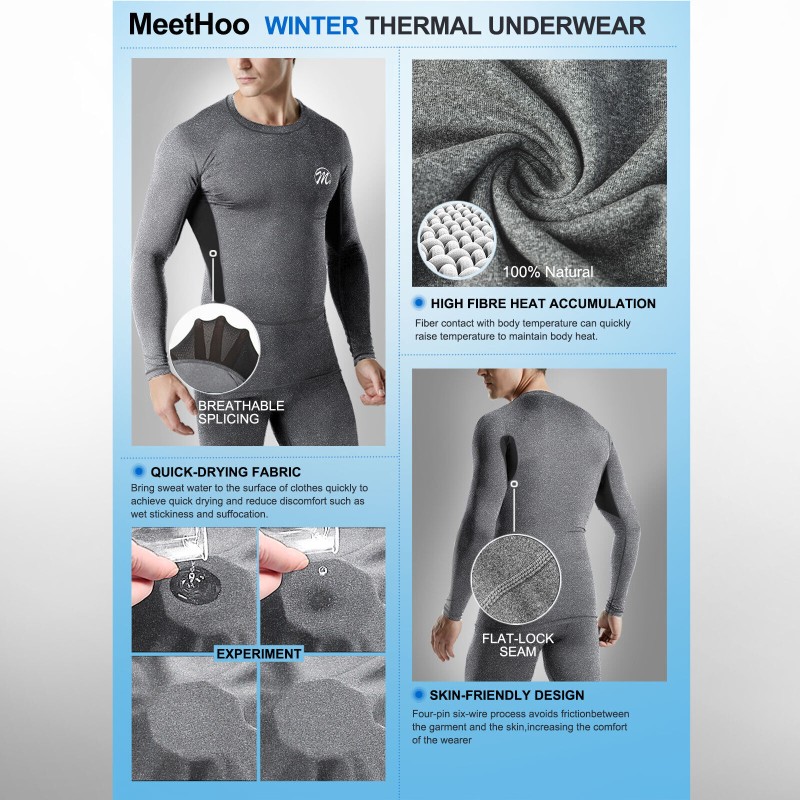 Thermal Underwear for Men Fleece Base Layer Top & Bottom Set Insulated Long John