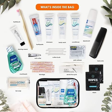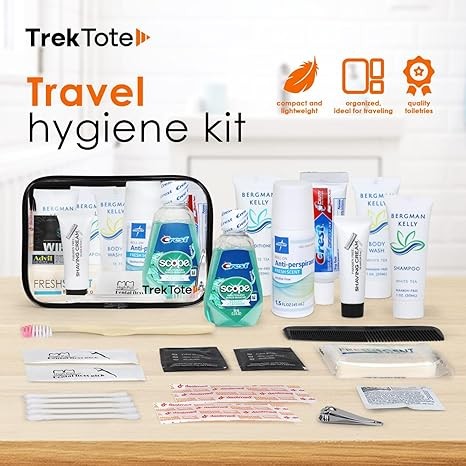 • TrekTote Travel Convenience Kit - Your On-the-Go Companion! Be travel-ready with our compact and TSA-compliant Travel Convenience Kit. Packed with essential travel-size toiletries and accessories, it's perfect for leisure or business trips. Stay fresh and prepared throughout your journey with TrekTote.