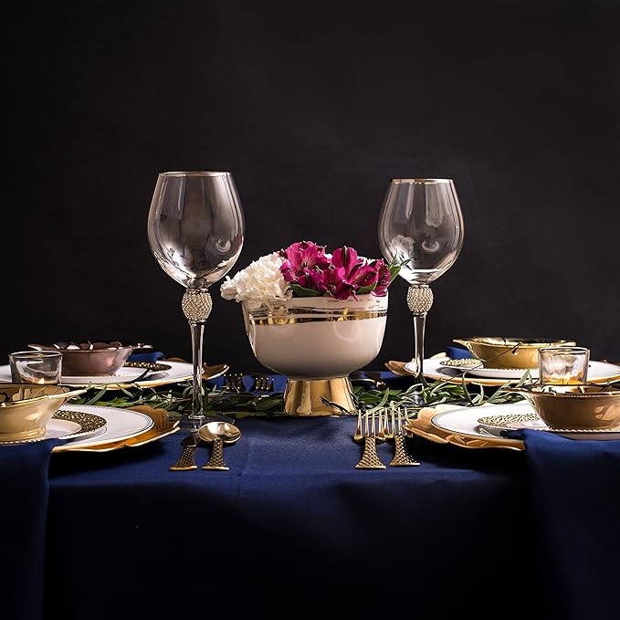 • DECORATIVE DESIGN: Diamond like rhinestones detail the top of the stem and silver details the clear glass rim to create a stylish finish that makes any occasion special.