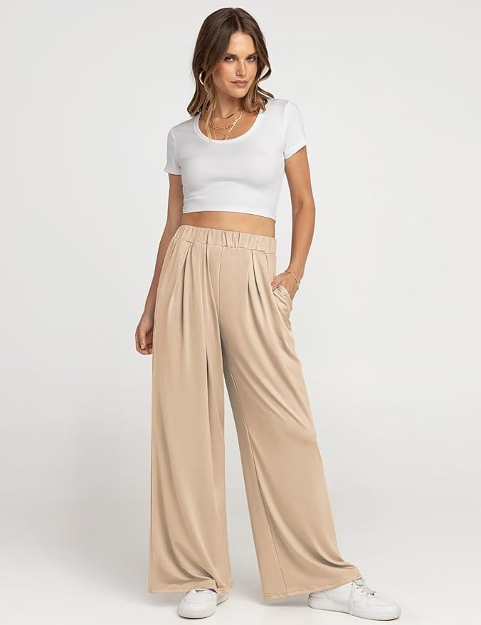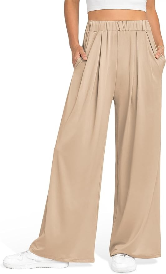 UEU Womens Wide Leg Palazzo Pants Casual High Waisted Flowy Lounge Pants with Pockets