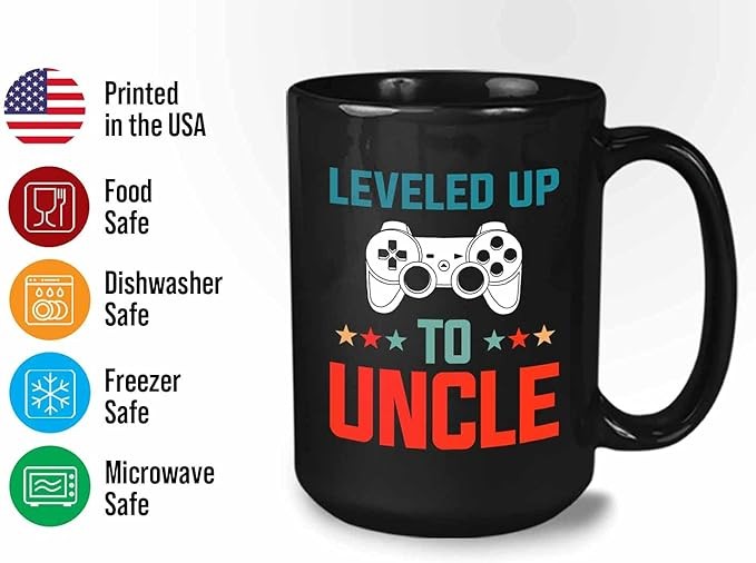 Uncle Coffee Mug - Leveled Up to Uncle - Vintage Fun Unique Gamer Gaming Video Games Father's Day from Aunt Nephew Niece 15oz Black