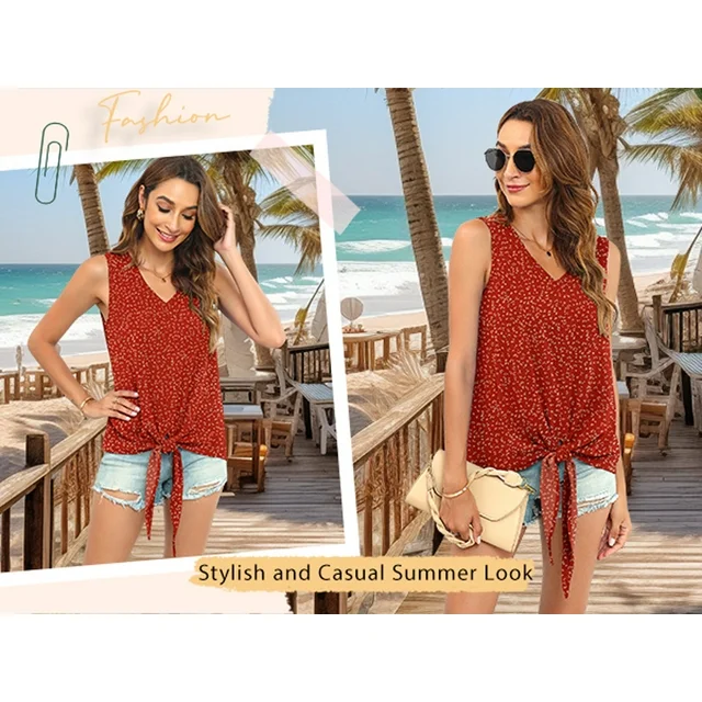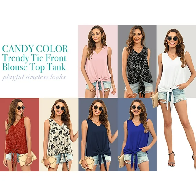 • Chic Design: V neck tank tops with tie front, summer sleeveless, classic curved hem, casual boho style and loose fit. This cute chiffon sleeveless blouse for women is very flattering and flowy to hide the stomach which suitable for any body shape for daily fashion look.