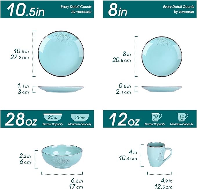【Satisfaction Guarantee】 In the description page with detailed product size information. Please visit vancasso store for more Styled and colorful dinner sets! Your purchase is backed by our exclusive 12-month against manufacturer defects. Vancasso will offer you a free replacement or refund if you receive any broken or chipped items