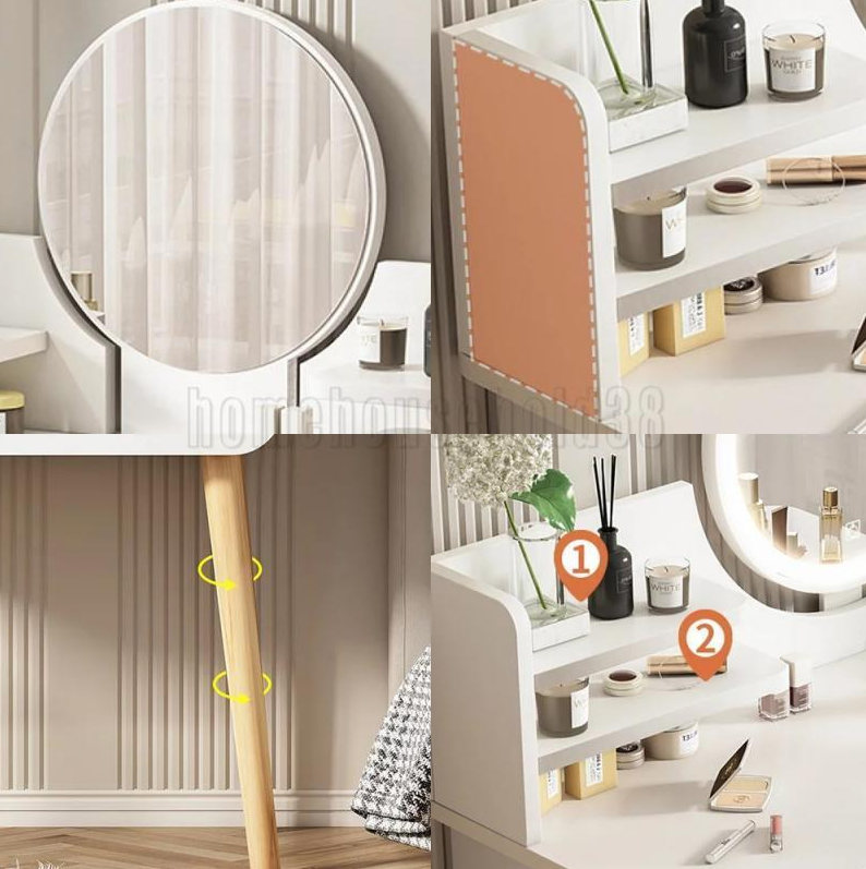 SIMPLE AND STYLISH DESIGN - The makeup vanity set with bright and fresh white coloration looks simple yet elegant, and will match any décor of your bedrooms; The vanity set integrates a mirror, a table, and a storage rack, guaranteeing that you’ll be adding elegant furniture to your home; It occupies a small area, and is an ideal choice for decorating rooms with a fashionable and modern style
