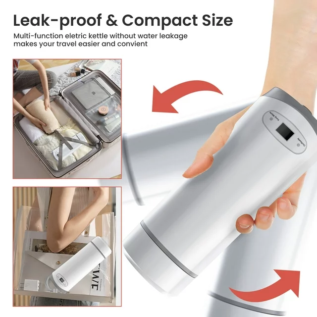 • No Leak&Anti-scald - VAVSEA 350ml small travel water bottle has a great seal so it won’t leak even upside down. Carry liquids so easily in your bag! The travel electric kettle features insulation material to prevent the surface temperature of the electric kettle from overheating.
