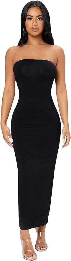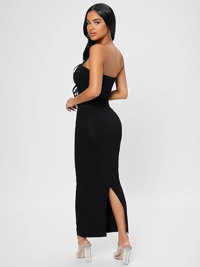 Verdusa Women's Strapless Sleeveless Split Back Long Bodycon Tube Dress