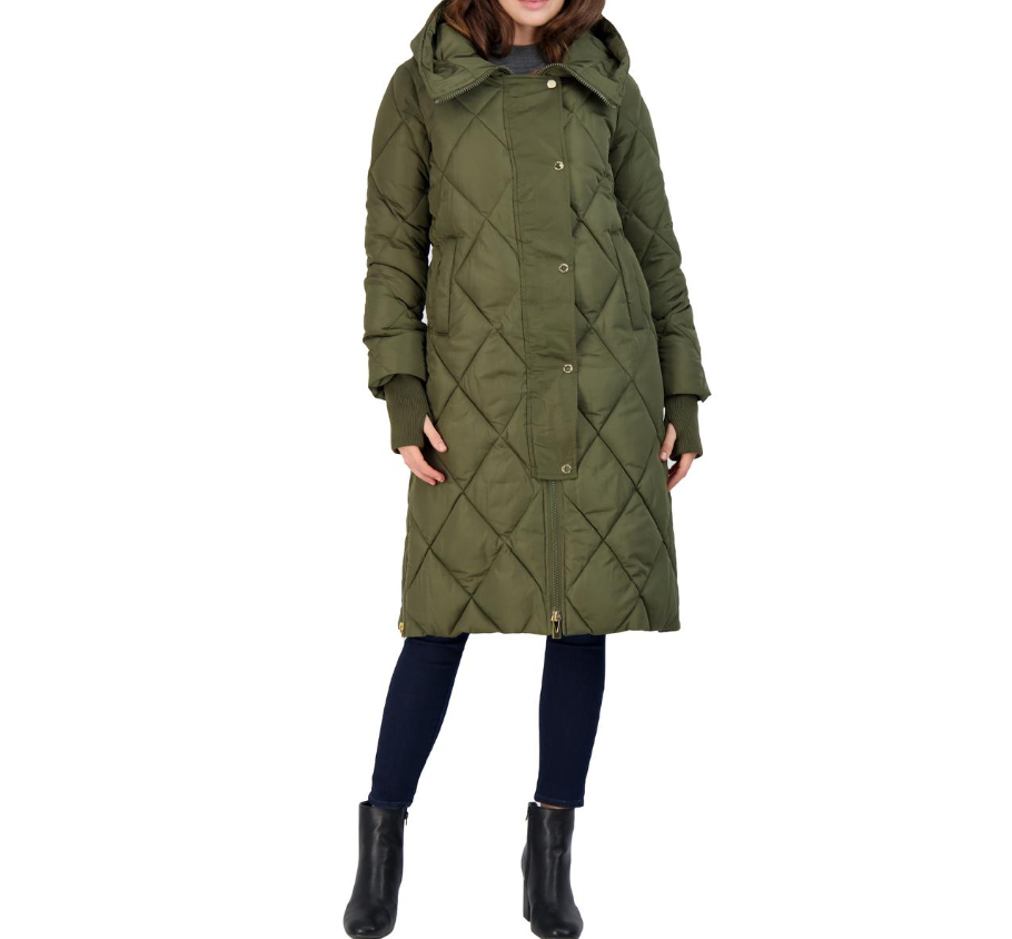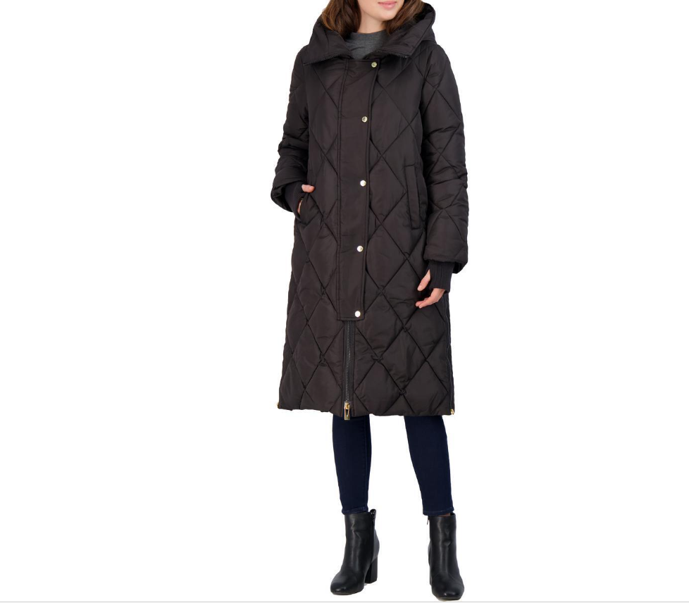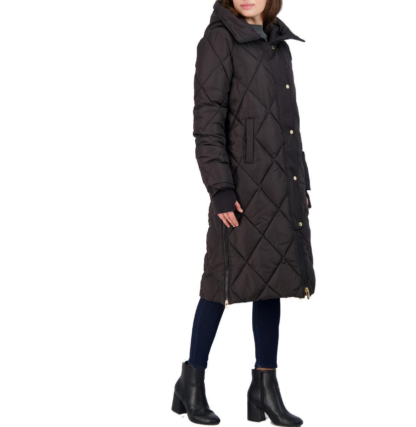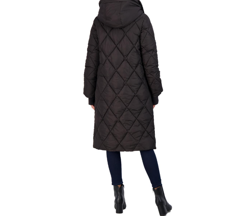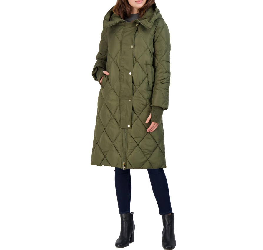 Via Spiga Women's Diamond Quilted Long Hooded Winter Puffer Coat