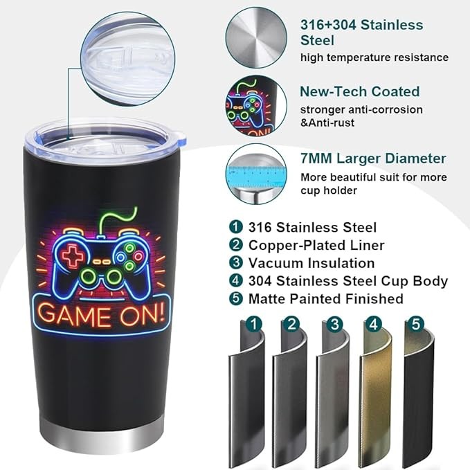 • 【EXPRESSING LOVE TO GAME LOVERS】- Our tumbler is designed for game lovers with unique and cool graphic design and shows love and support to game lovers.