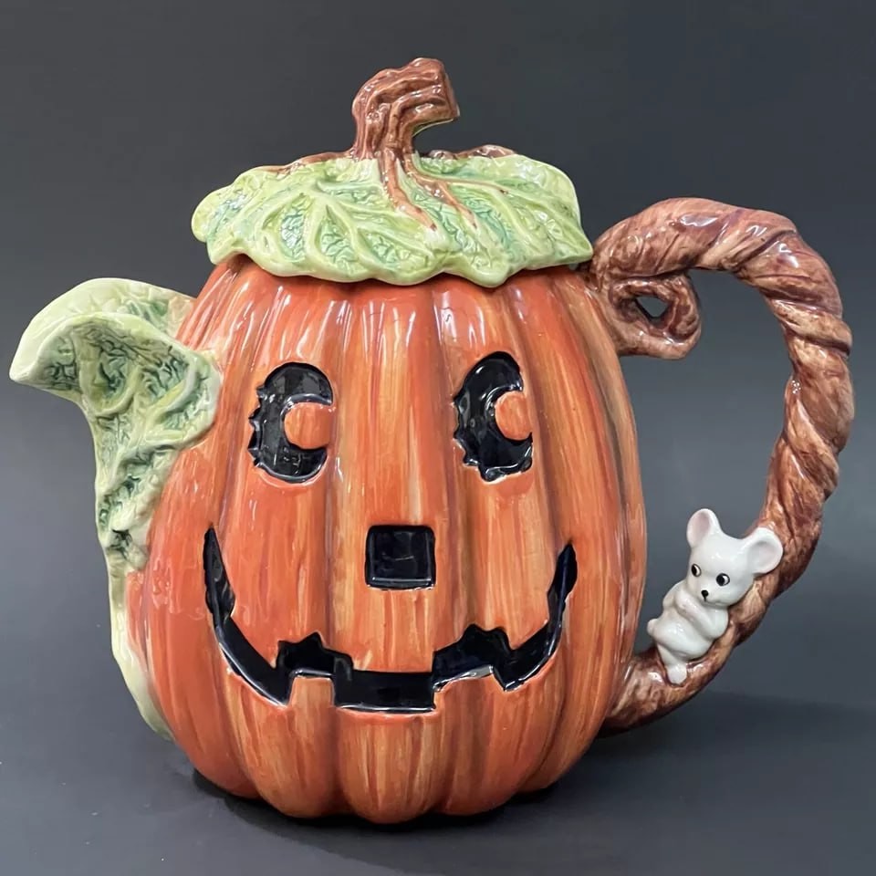 Fitz & Floyd Pumpkin Mouse Tea Pot & Creamer