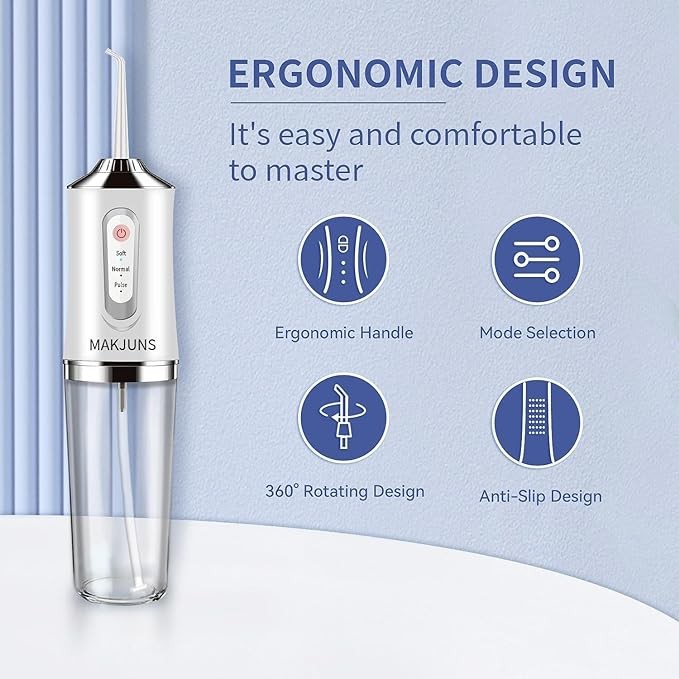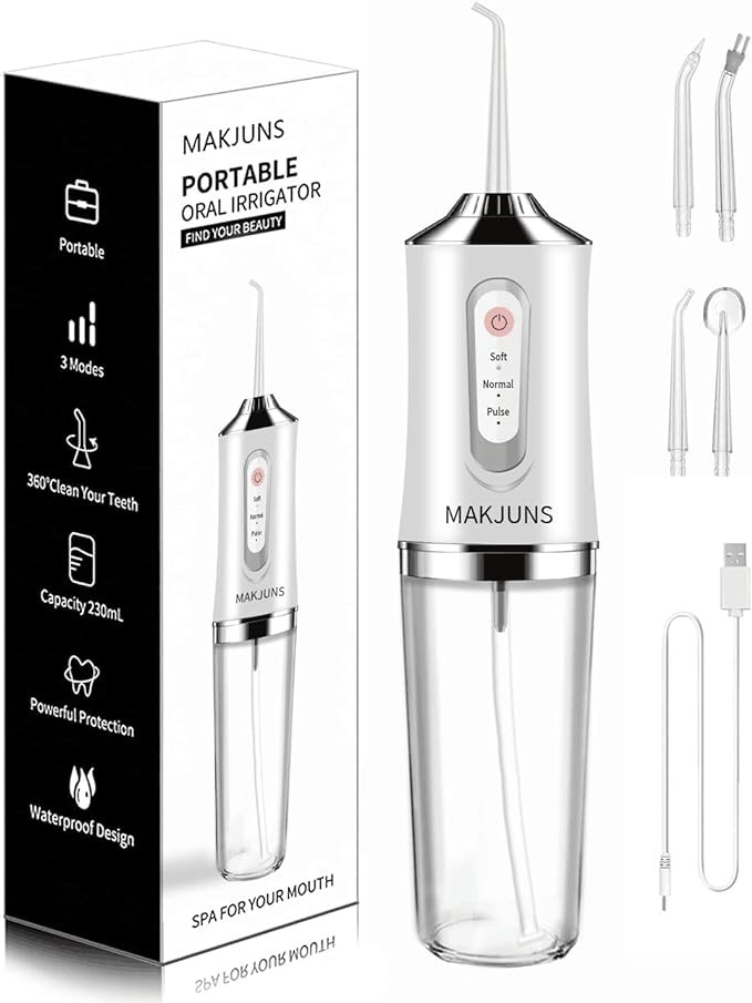 Water-Flosser-Cordless-Teeth-Cleaner MAKJUNS Water Dental Flosser with 3 Modes 4 Jets Rechargeable IPX7 Waterproof Dental Oral Irrigator for Travel Home Braces(Classic White)