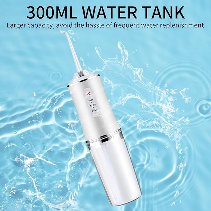【Upgraded 300ml Extra-Large Water Tank】This water dental flosser features an upgraded 300ml water tank, twice the capacity of other old models, eliminating the need for frequent refills and making your oral cleaning more convenient and efficient.